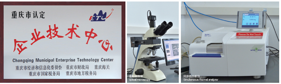 研发设施 技术研发中心拥有近700多平方米现代化的实验室和办公场所,拥有各种大型先进分析测试仪器,其中包括TGA/DCS热分析仪、XRD衍射仪、GC色谱仪、化学成分快速分析仪、影像式高温烧结点实验仪、高温膨胀仪、激光粒度仪等,并与西南大学化学化工学院共建共享用液相色谱、核磁共振、红外光谱、质谱、能谱、气质连用色谱等多台高科技大型测试分析仪器,为技术创新、项目开发研究、产品质量控制提供了及时、准确的信息。 |